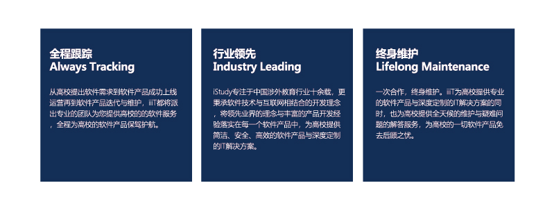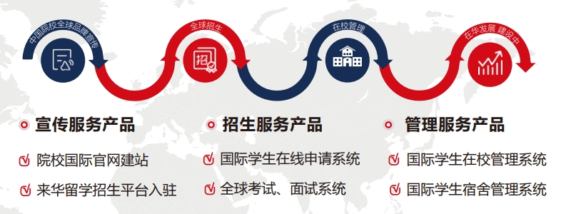 留管通是iStudy雙日教育科技旗下首創(chuàng)集中國院校全球品牌宣傳、全球招生、考試/面試、學生在校管理等于一體的全方位智能信息化系統(tǒng)服務品牌。品牌下囊括了全球來華留學院校官網(wǎng)建站、全球來華留學在線申請系統(tǒng)、全球來華留學考試/面試系統(tǒng)、全球來華留學在校管理系統(tǒng)、全球來華留學宿舍管理系統(tǒng)。公司自主研發(fā)的五大產(chǎn)品已為數(shù)十家中國院校提供了留學生招生及管理的高效工具,產(chǎn)品可獨立研發(fā),也可整合關聯(lián),形式更加靈活,操作更加便利,為加速高校國際化助力。